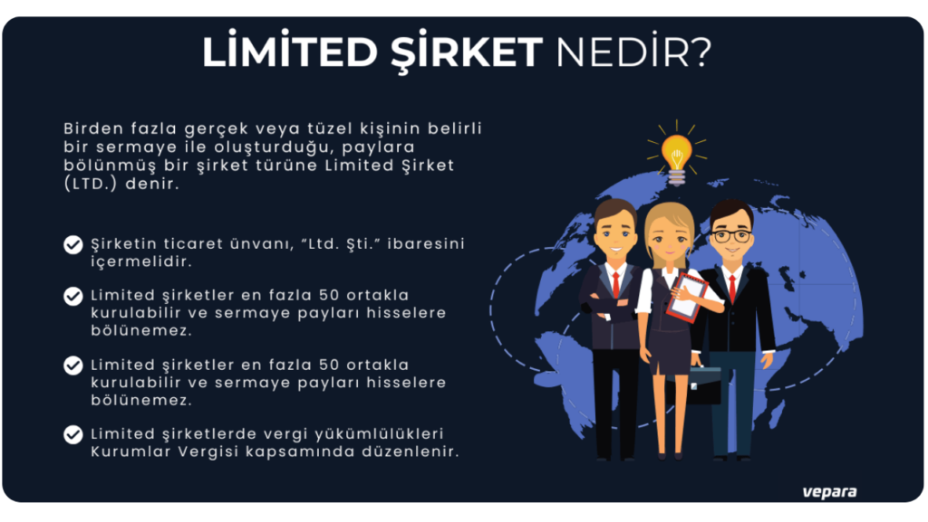 Limited şirket, Türk Ticaret Kanunu’nun 573. maddesine göre birden fazla gerçek veya tüzel kişinin belirli bir sermaye ile oluşturduğu, paylara bölünmüş bir şirket türüdür. Şirketin sermayesi en az 50.000 TL olmalı ve sermaye paylara bölünmelidir. Ortakların sorumluluğu yalnızca koydukları sermaye oranıyla sınırlıdır.